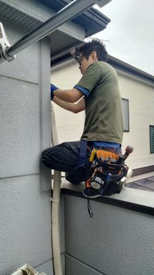 ある日の社長 エアコン取付作業中です!!いつも通り