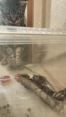 カチャカチャ動きまわる虫たちが気になるうちの猫