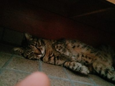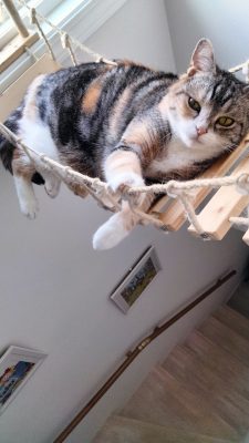 手作りの吊り橋でおやすみ猫ちゃん。窓のちかくで